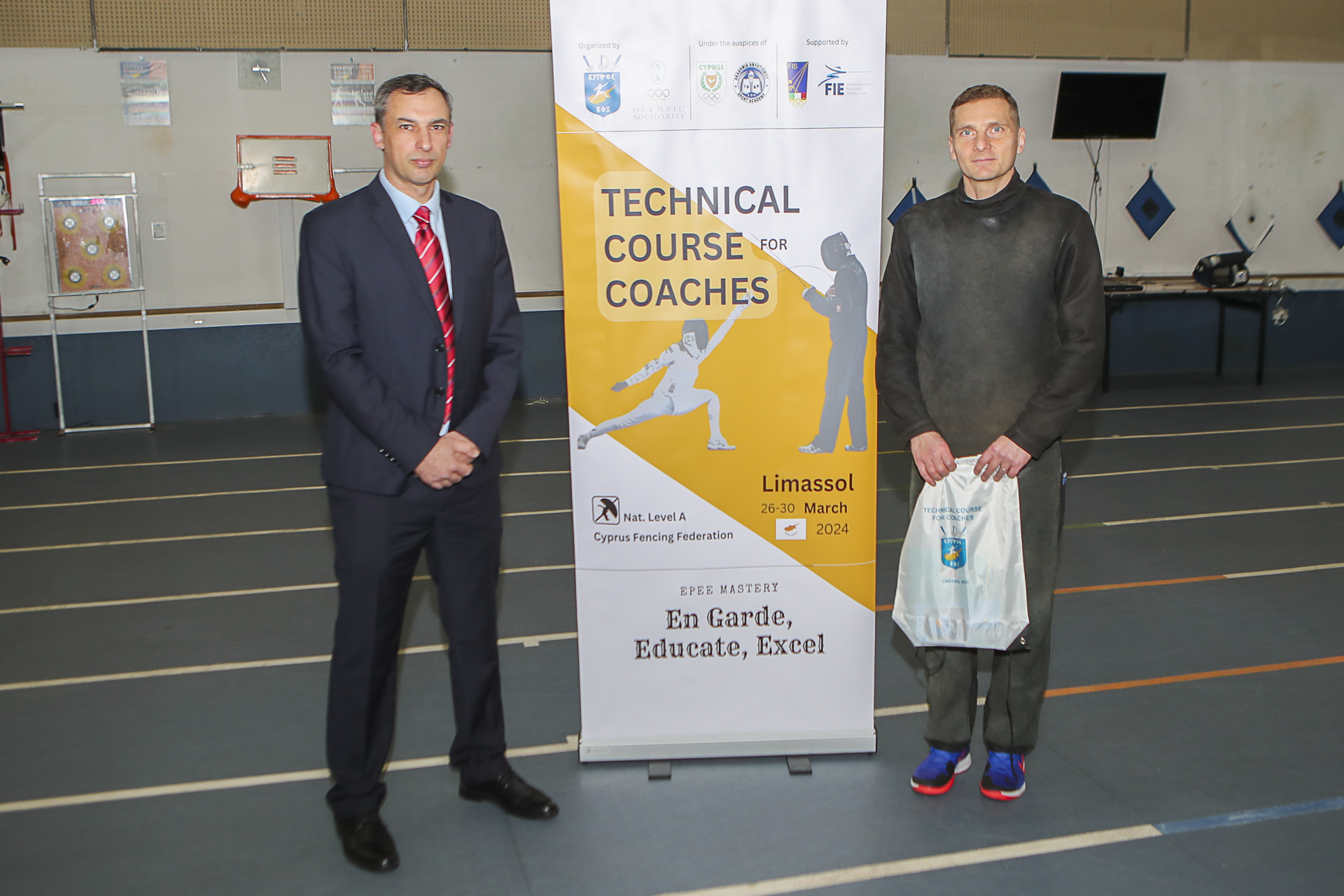 Το σεμινάριο, που φιλοξενείται στο Αθλητικό Κέντρο «Σπύρος Κυπριανού» στη Λεμεσό και θα διαρκέσει μέχρι τις 30 Μαρτίου 2024, χρηματοδοτείται από το πρόγραμμα Ολυμπιακής αλληλεγγύης με την έγκριση της Παγκόσμιας Ομοσπονδίας Ξιφασκίας, έχει ως στόχο τη βελτίωση της τεχνικής κατάρτισης των Κύπριων προπονητών στο Ξίφος Μονομαχίας. Με την ηγεσία του διακεκριμένου Ιταλού μαέστρο ξιφασκίας, Giacomo Falcini, το σεμινάριο προσφέρει σημαντικά εφόδια για την ανάπτυξη του αθλήματος στο νησί.